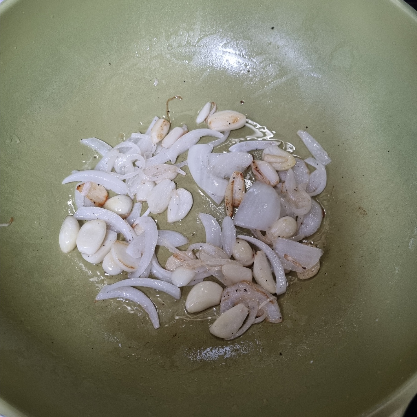 6. 기름을 두르고 마늘 양파를 볶는다.