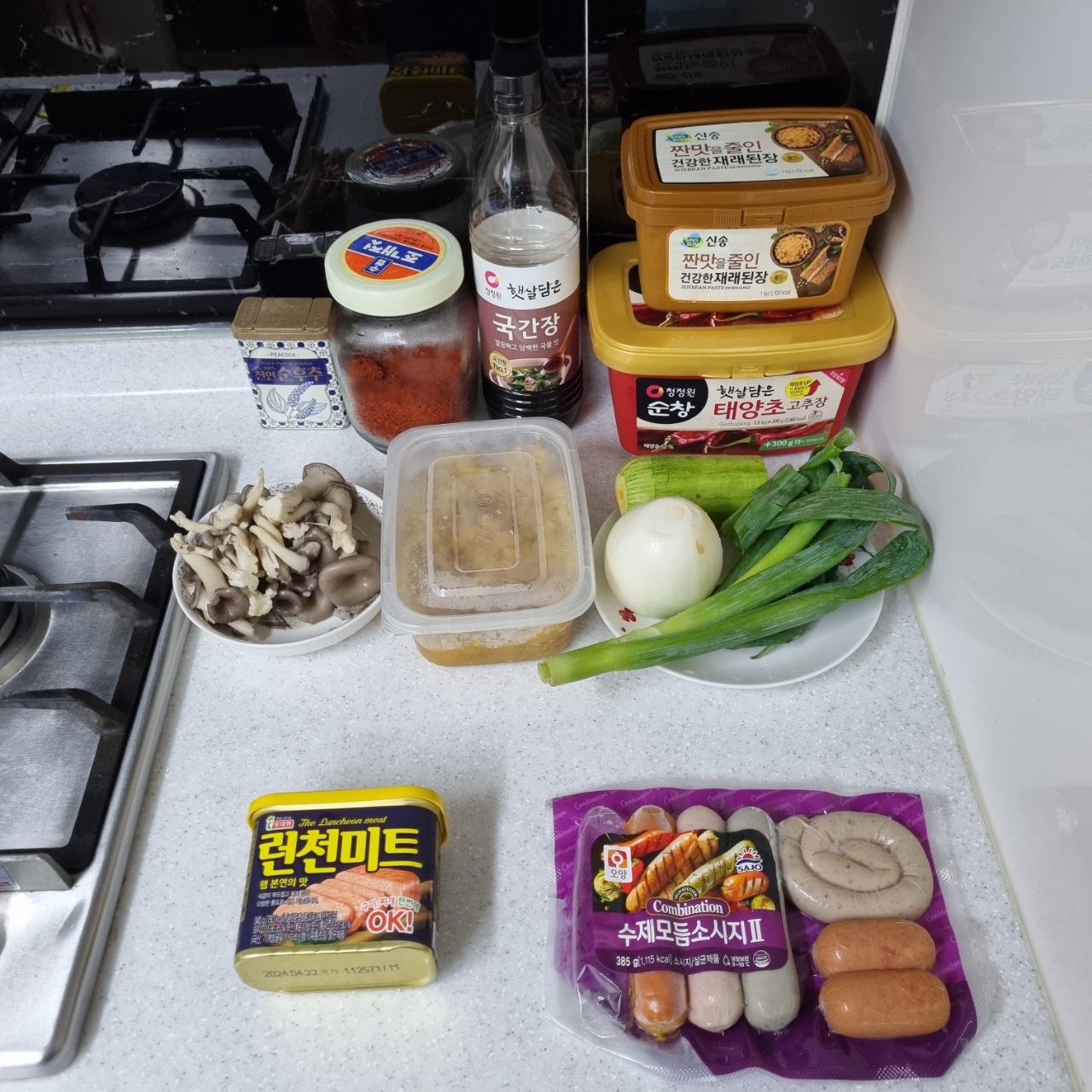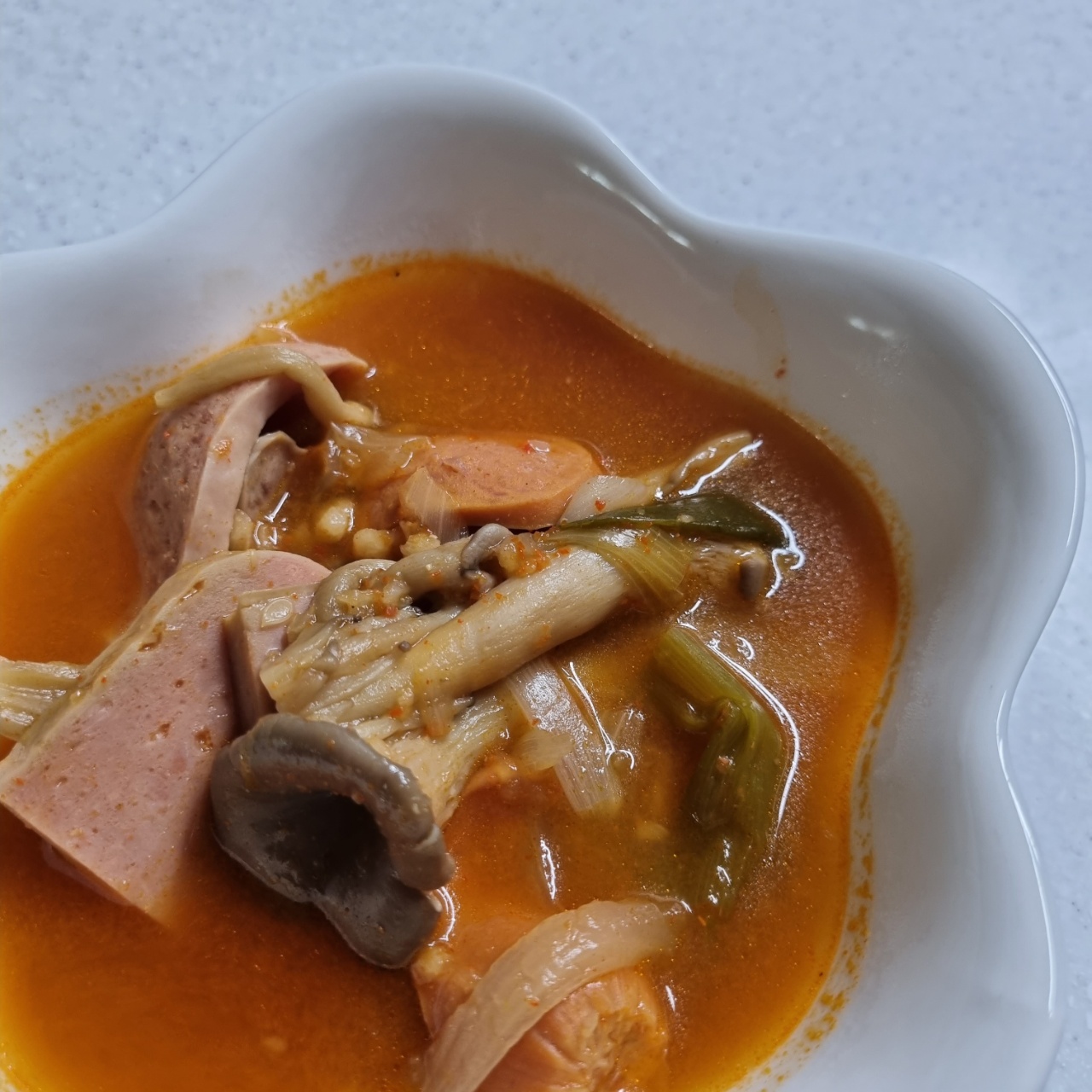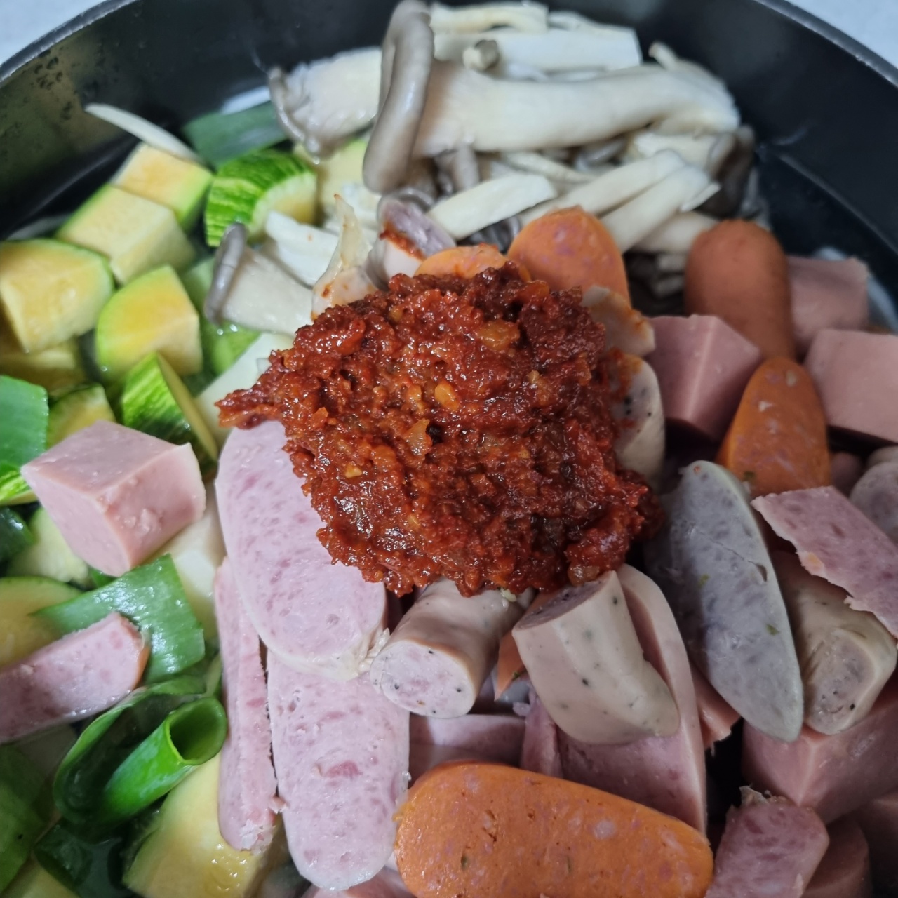 4. 호박, 버섯, 햄, 소세지를 넣는다.