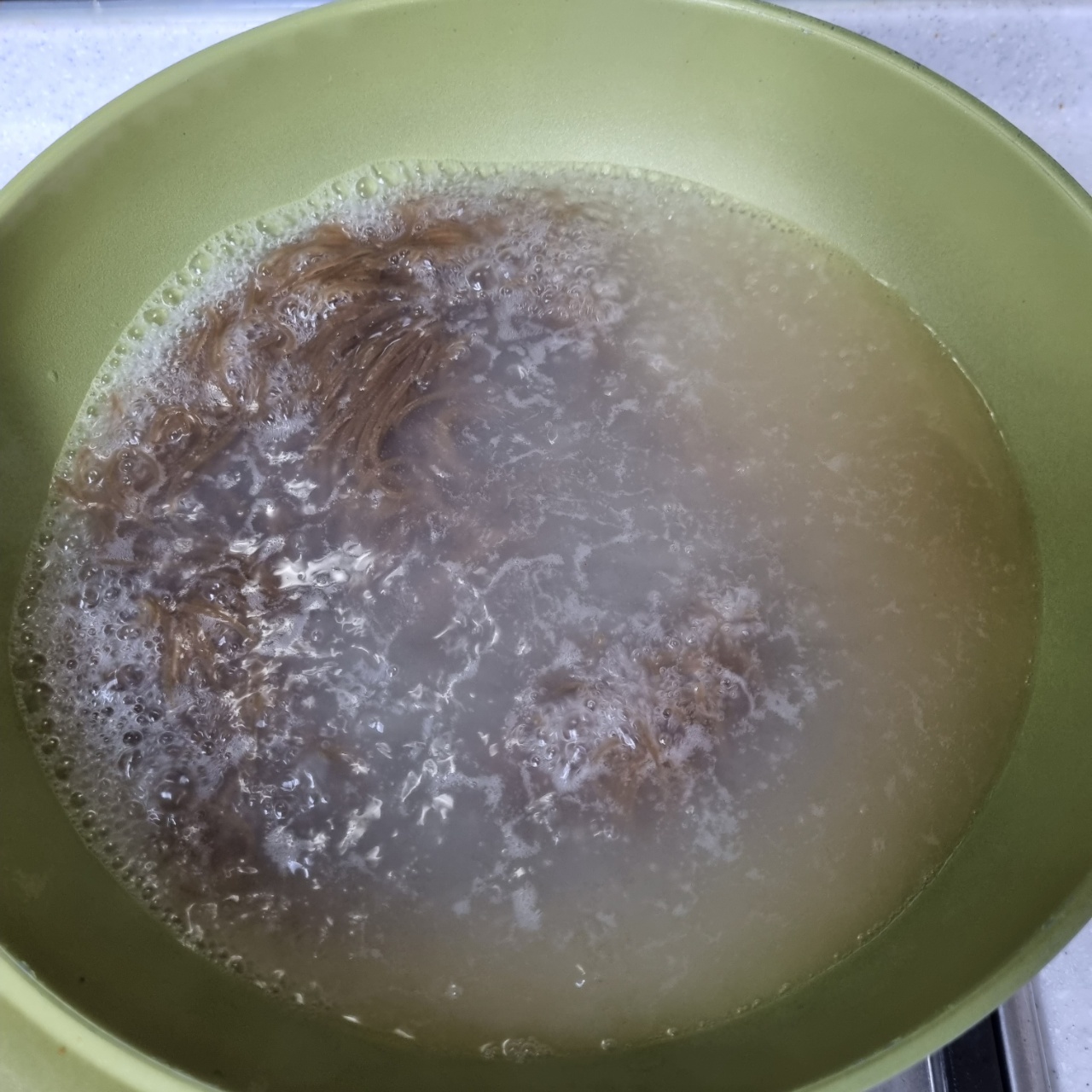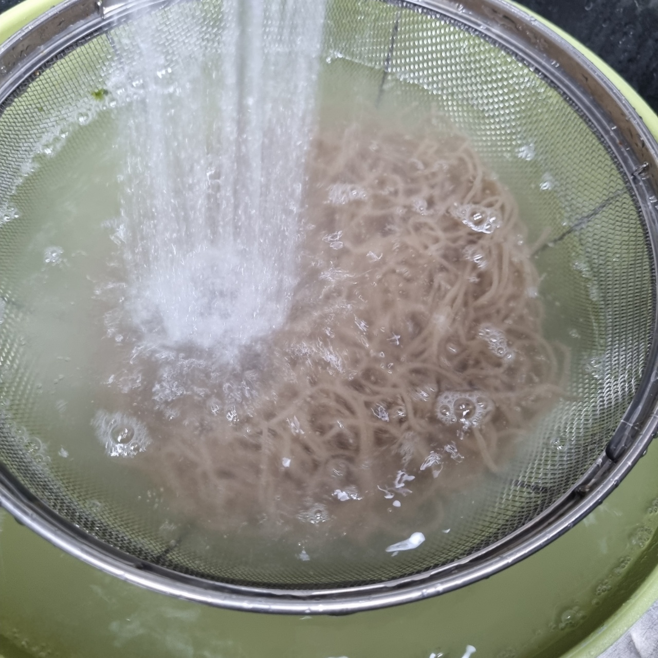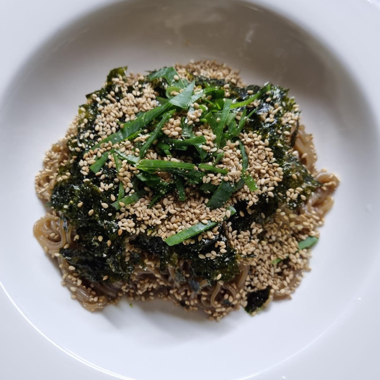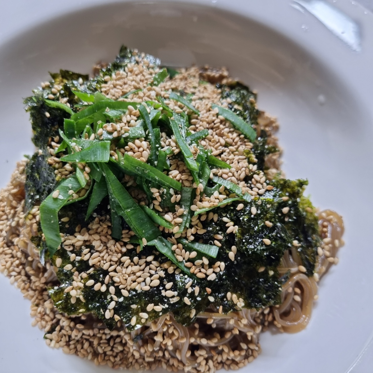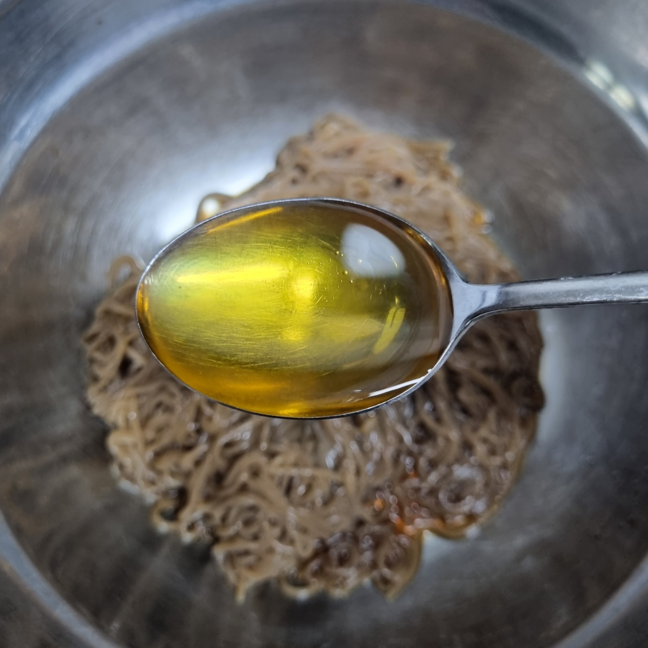 5. 들기름을 넣고 면과 양념을 버무린다.